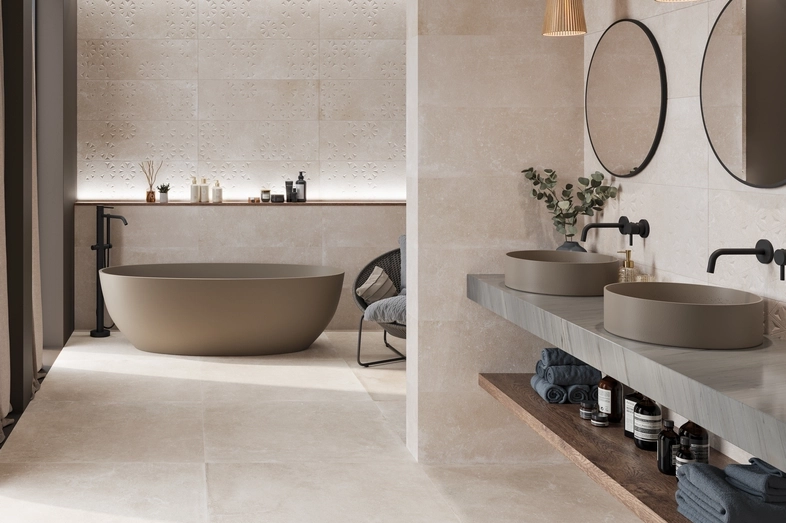 Désormais, les techniques récentes de fabrication et d’impression des carrelages ont permis de reproduire à la perfection et avec une grande fidélité, sur du grès cérame, la beauté tellurique de la pierre.